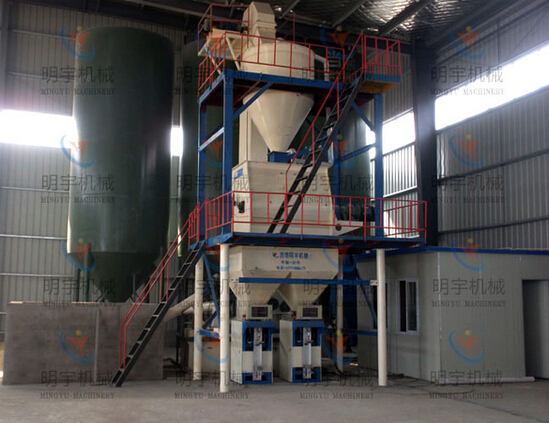 该生产线为两层平台模式,创造性的设计了原料待混仓,即原料在进行搅拌混合时,下一批原料同时提升至待混仓等待混合,节省了原料提升时间,极大的提高了生产效率。本设备要求厂房高度在8.5-9.0米之间,3-4人即可生产。具有占地小、产量大、设备高端大气等优点。